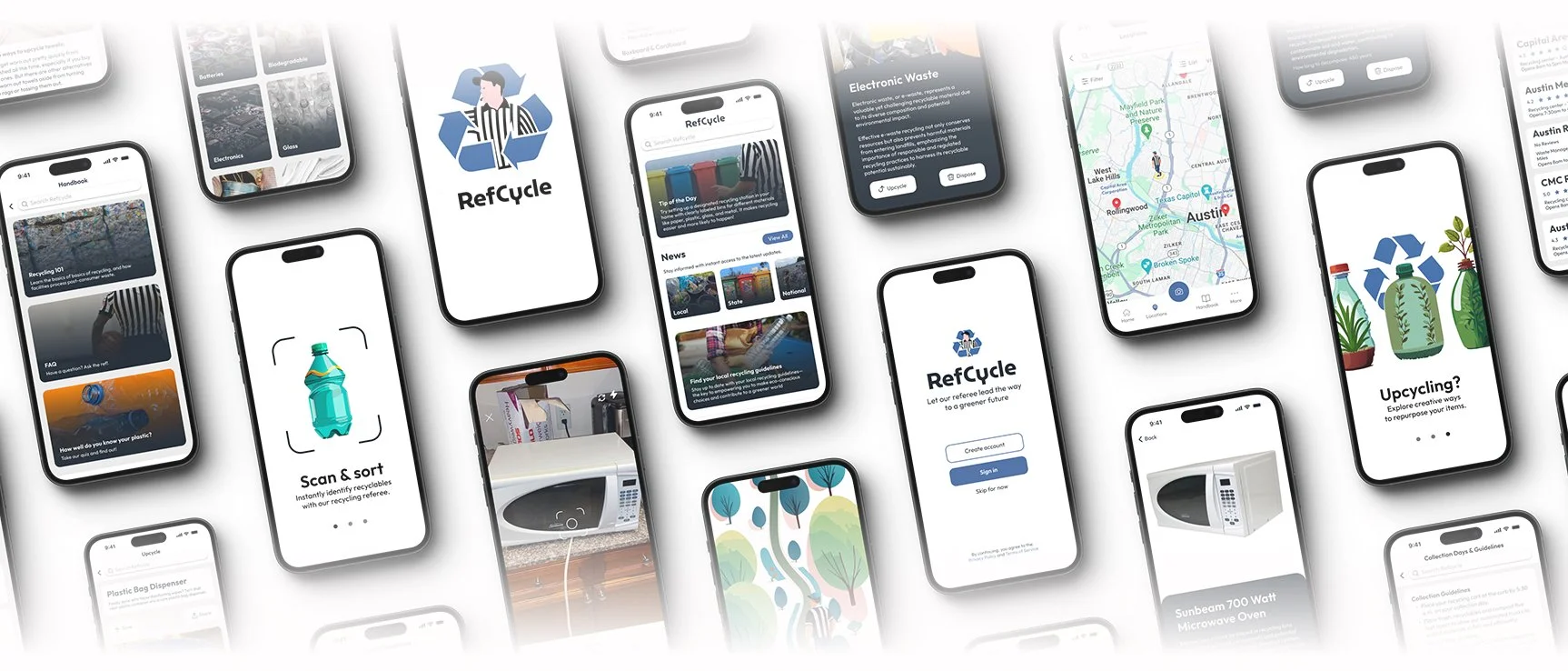 RefCycle is a discovery-driven product concept focused on reducing recycling decision friction. Through user research and iterative testing, the product evolved into a real-time guidance tool featuring material identification, localized disposal support, and scoped MVP prioritization.